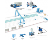 流水線采用環形的方式進行生產,3500*9000(mm)模臺共60張,構件采用立體養護倉進行養護。生產線按照模臺清理、畫線、裝邊模、噴油、擺渡、布料、振搗、表面整平、養護、磨平、養護、脫模的生產工序,可選用自動/手動兩種控制方式進行操作。